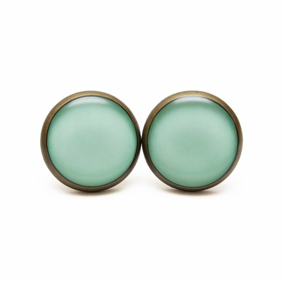 Grayed Jade Stud Earrings Jade Jewelry Spring Color 2013 Nephrite Color Pastel Earrings Gray Jade Stud Earrings Nephrite Gray Green